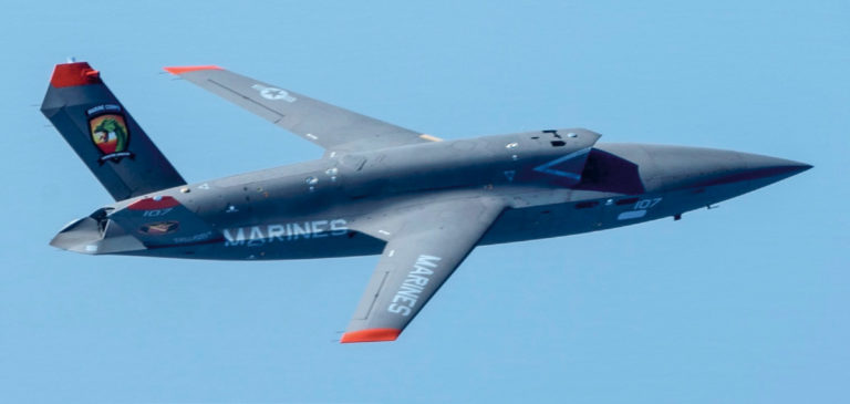 Le premier des deux Kratos XQ-58 Valkyrie appartenant à l’US Marine Corps (USMC) a réalisé son premier vol depuis la base d’Eglin, en Floride. Sous le contrôle des ingénieurs et techniciens de Kratos, le drone a quitté sa rampe de lancement pour effectuer son vol inaugural, accompagné par deux F-16C chargés d’assurer sa protection et, éventuellement, de détruire l’engin en vol s’il représentait le moindre danger pour la circulation aérienne (pour cela, les deux Fighting Falcon volaient avec des missiles air-air en voilure). Faisant partie intégrante du programme PAACK-P (penetrating affordable autonomous collaborative killer – portfolio), mené conjointement avec l’US Navy, ce drone de type Loyal Wingman doit fournir à l’USMC une capacité accrue de guerre électronique et d’appui tactique afin de créer de nouveaux profils de missions aux unités volant sur F-35B/C. En effet, sauf imprévu, à l’horizon 2030, plusieurs MQ-58 Valkyrie voleront alors en essaims autour d’un ou de deux F-35B ou F-35C. D’ici là, ce premier vol estampillé USMC (des essais sont menés également par l’US Air Force) a permis de vérifier la bonne tenue en vol du XQ-58 Valkyrie. Pour Kratos et pour les militaires américains, ce vol inaugural a été une vraie réussite.