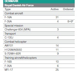 – L’escadre de chasse Skrydstrup : escadron 727 avec F-16 Fighting Falcon et F-35 Joint Strike Fighter ;