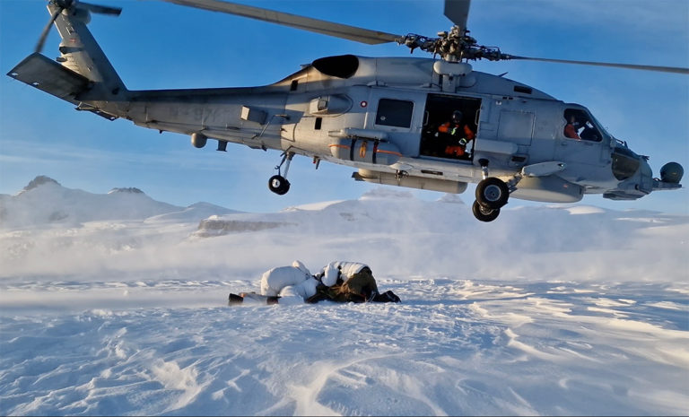 – La patrouille de traîneaux à chiens Sirius, une unité d’élite qui inspecte les régions les plus reculées du nord-est du Groenland afin de maintenir la souveraineté danoise. La patrouille Sirius dispose désormais d’une nouvelle capacité complémentaire, à savoir des spécialistes de l’Arctique dits Arktiske Specialisters. Cette unité (ARK SPEC) ne se sert pas de chiens de traîneau, mais plutôt de motoneiges, de bateaux à moteur rapides et d’autres véhicules mobiles. L’unité peut être déployée, avec son équipement, par voie aérienne ou larguée par parachute.