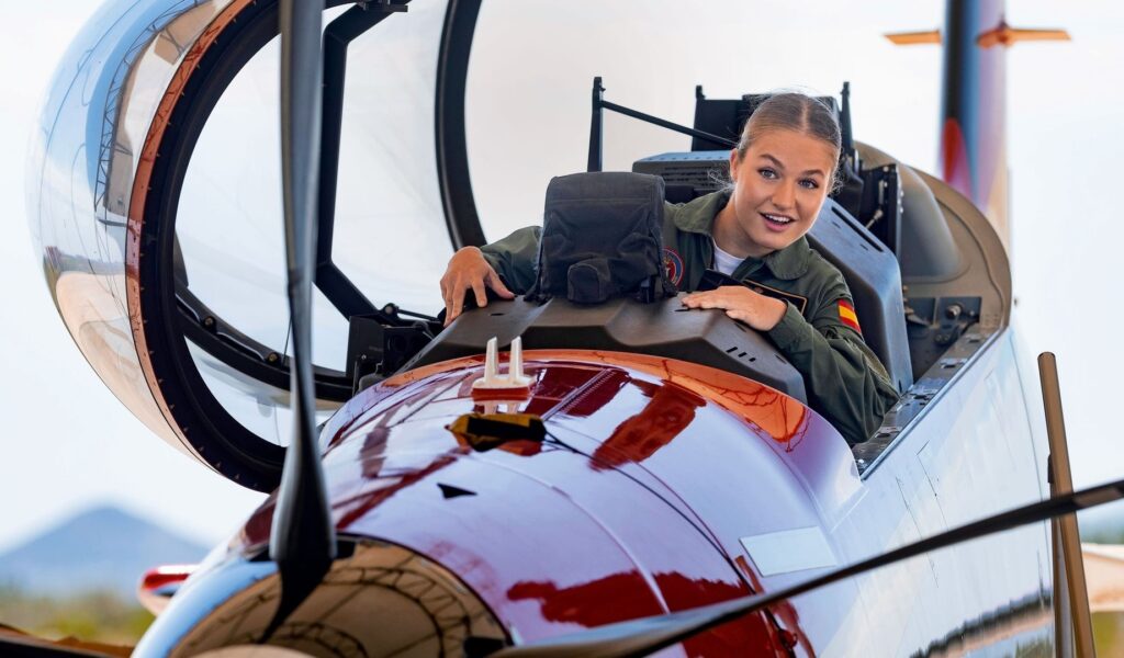 La future reine d'Espagne est en train de compléter sa formation de pilote militaire à l'AGA de San Javier, où elle a réalisé récemment son premier vol en solo sur Pilatus PC-21. <em>Maison royale d'Espagne</em>